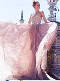 Mermaid Lace Long Prom Dresses, Elegant Bateau Evening Dresses OKG23