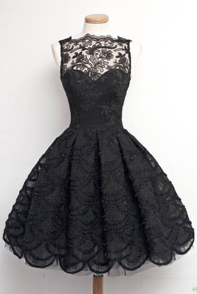 Pretty Gorgeous Black Lace Handmade Vintage Homecoming Dress K247
