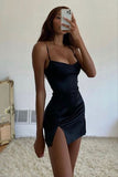 Sexy Straps Short Homecoming Dresses Black Tight Hoco Cocktail Dresses OK1433